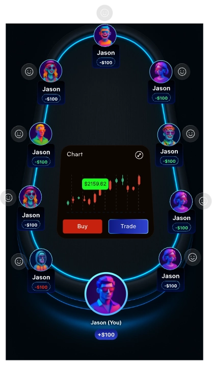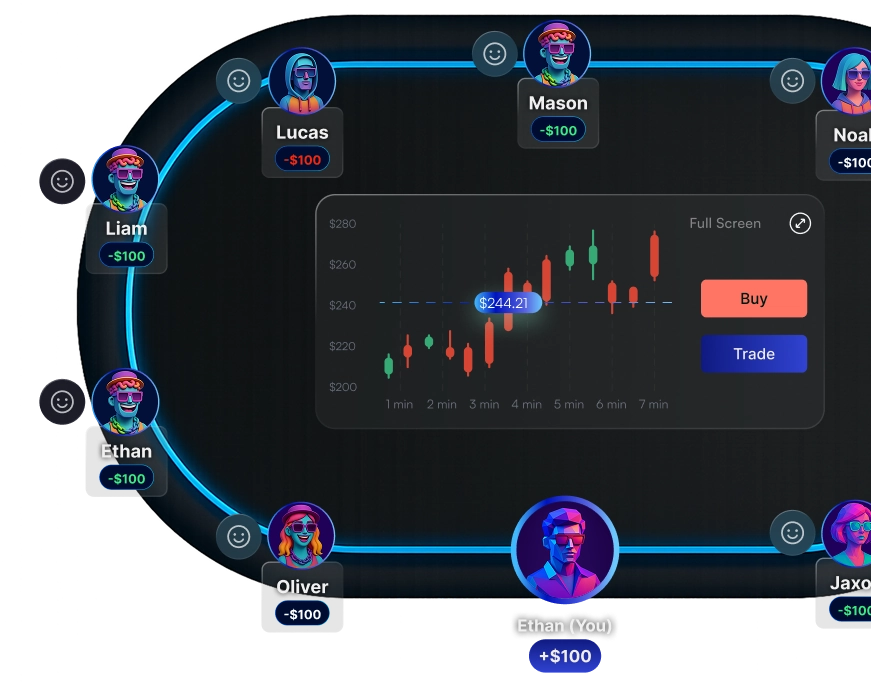Step into the TradeStars a dynamic, poker-style table where traders go head-to-head. Each seat represents a real participant, all watching the same live market feed and making their moves in sync. It’s not just about beating the market — it’s about outplaying your rivals.
